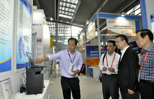 國家工信部電子信息司司長刁石京蒞臨公司展臺參觀指導,詳細了解企業(yè)及產(chǎn)品應(yīng)用情況,勉勵企業(yè)將技術(shù)創(chuàng)新深入開展下去。