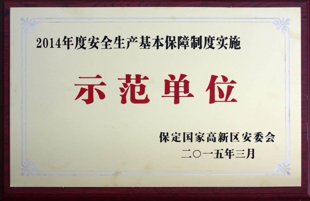 2015年3月我公司獲得2014年度安全生產(chǎn)基本保障制度實施示范單位稱號